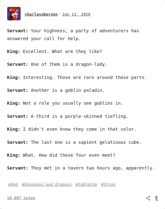 arrow-up1105arrow-down1imageAlone, it is a fool's errand!ttrpg.networkazrendelmare@ttrpg.network · 12 天前message-square6linkfedilink