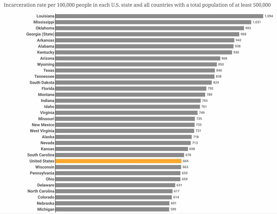 Dessalines@lemmy.ml to Data Is Beautiful@lemmy.ml · 2 years agoWorld Incarceration Rates If Every U.S. State Were A Country (No other country even makes the first page)lemmy.mlimagemessage-square71linkfedilinkarrow-up1310arrow-down17file-text