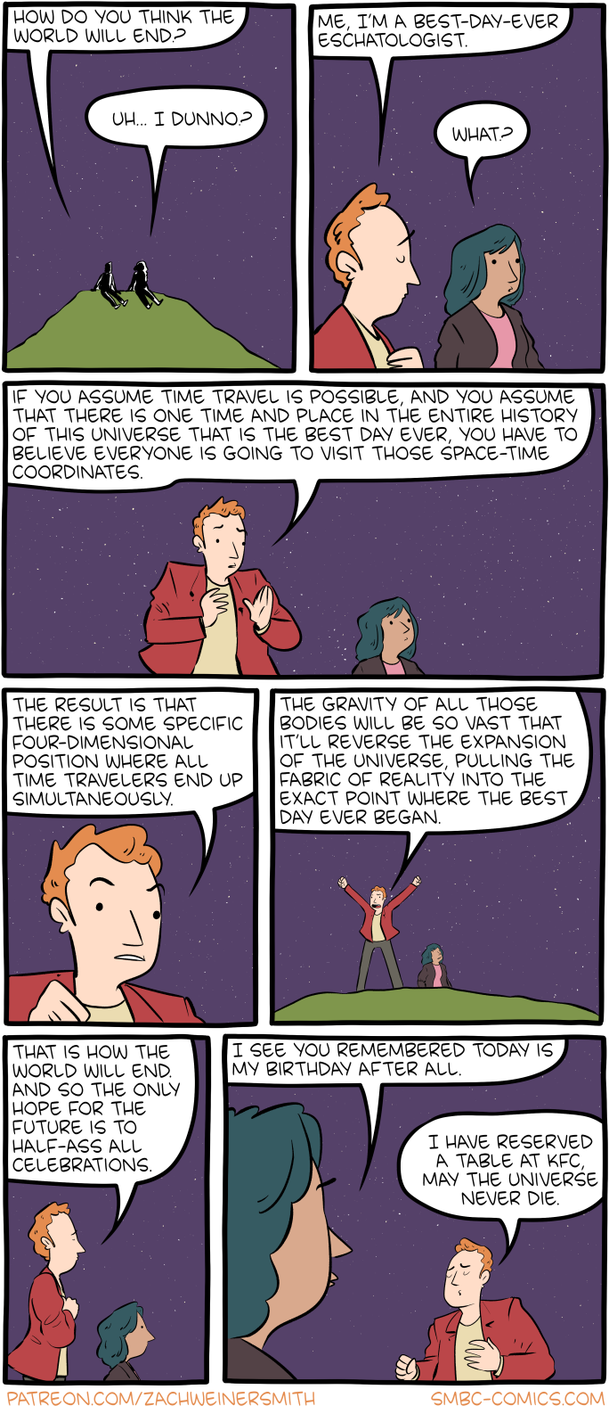 The only possible problem is if being crushed in a universe-ending sea of flesh would make it no longer be the best day ever.