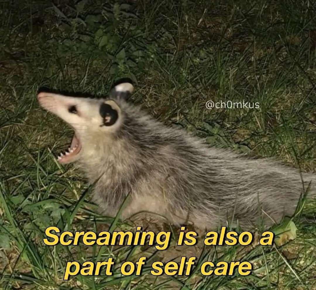 This isn’t a shitpost, this is legitimate. Being able to work through the physicality of emotions is an important part of processing them. You need to be able to cry when you’re sad, jump up-and-down when you’re excited, and scream when your angry, for examples.