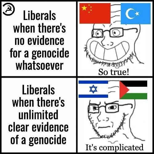Libs have the superpower of selective skepticism, where they forego “critical thinking” in discussions of issues that benefit the interest of the West and somehow restore said “critical thinking” and talk big about “nuance” when it’s about e.g. slaughtering resisting brown people.