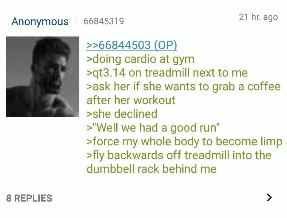thomas_h_bombadil@lemmy.dbzer0.com to 4chan@lemmy.world · 7 months agoAnon gets rejectedlemmy.dbzer0.comimagemessage-square11linkfedilinkarrow-up1275arrow-down17
