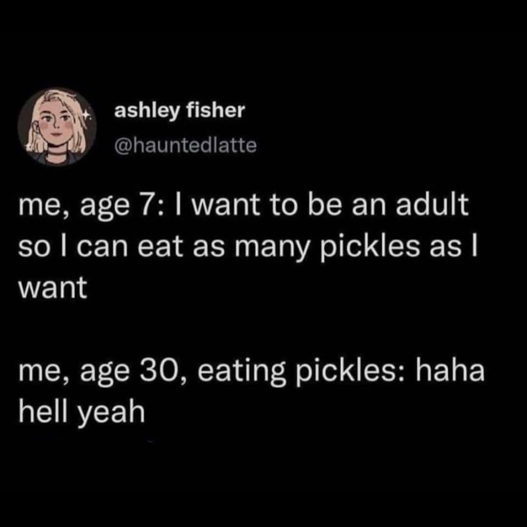 Me, age 50, with hypertension: I want to be 30 so I can eat as many pickles as I want.