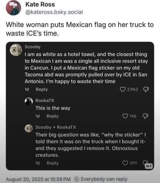 minus-squarefuckgod@feddit.onlinelinkfedilinkEnglisharrow-up13·6 months agoI just want a story where a pile of ICE bodies is discovered somewhere. I actively want to see a body pile of corpses, but of them. I might forgive certain kinds of ignorance (begrudgingly) if people snap out of it, but I will never forgive ICE members. We’re living through what will become Inglorious Bastards II.