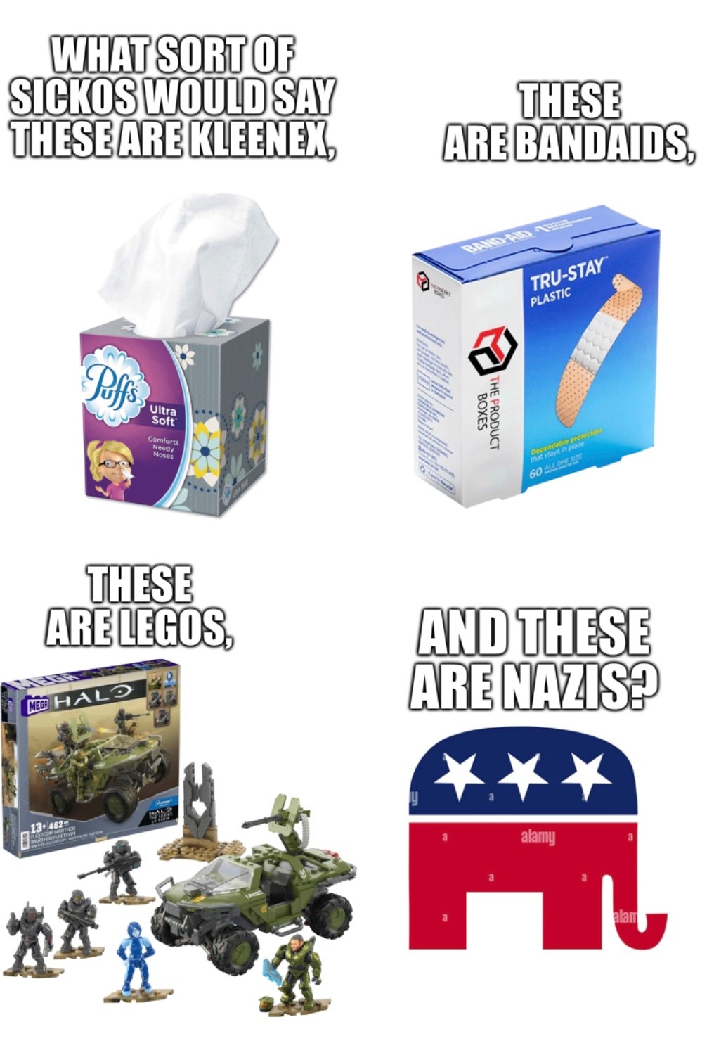 Tissue, bandage, bricks, far right extremist authoritarian. Remember, if it doesn’t come from the Germany region of Europe, it’s just sparkling fascism.
