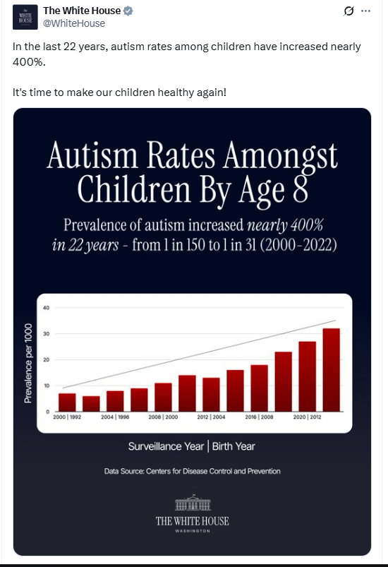 I don’t know whether it’s good or bad that the diagnostics / definition of autism seem to be broadening — that’s above my pay grade. But you can’t deny people who weren’t considered autistic 30 years ago are today, and so to compare autism rates which measure clearly different levels of capability is pretty useless.