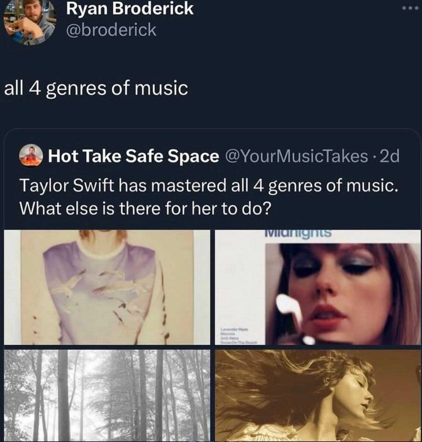 tgirlschierke@lemmy.blahaj.zone to 196@lemmy.blahaj.zoneEnglish · 11 days agoTayrule Swiftlemmy.blahaj.zoneimagemessage-square97linkfedilinkarrow-up1463arrow-down19