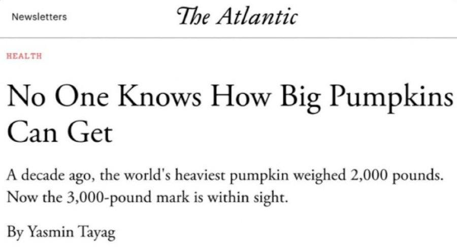 I saw one of those around 2000 lb pumpkins. They are a beautiful sight. I want to grow one but I know I don’t have the space