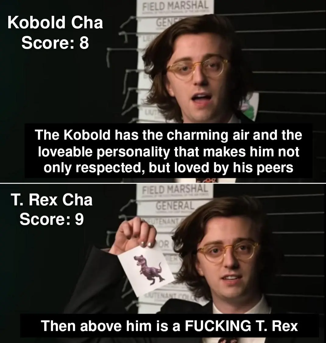 Makes sense. I’d follow Just Some Dog into battle, but anyone would follow an armoured and bellowing t-rex .