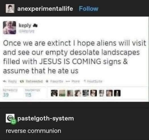 arrow-up1622arrow-down1imageEaten by Jesuslemmy.worldickplant@lemmy.world to Lemmy Shitpost@lemmy.world · 27 days agomessage-square9linkfedilink