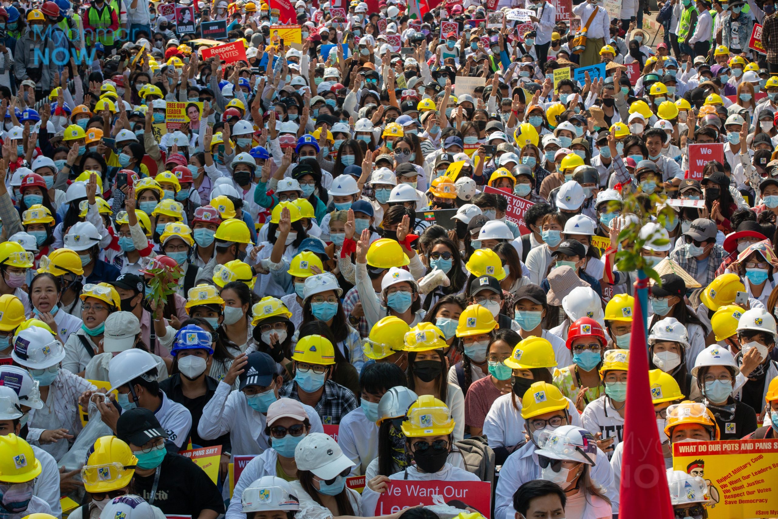 So long story short, this is worker driven, but largely an upper middle class movement. Doesn’t take into account ethnic minorities living in poverty, who, before the coup, were actually starting to ally with the military (who wanted more seats so was willing to give concessions). English signs because China is taking a neutral position - they benefit either way, so they don’t really care as long as money and resources still flow. So they think they can appeal to the west to intercede on their behalf.