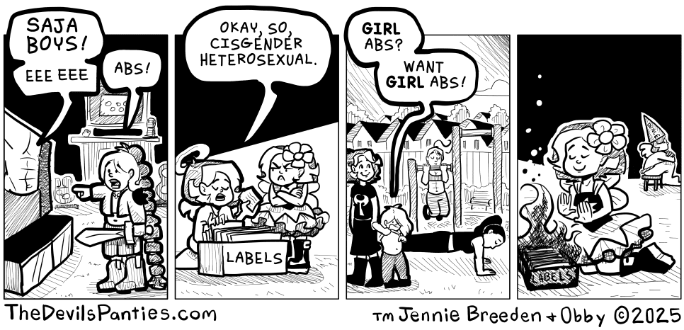 Im not 100% but I think its she assumed since she pointed at abs the thought floated through her head that her kid was heterosexual? I keep thinking of the old simpsons where the bullies were calling the pudgy german kid gay and he was like. Im nothing yet.