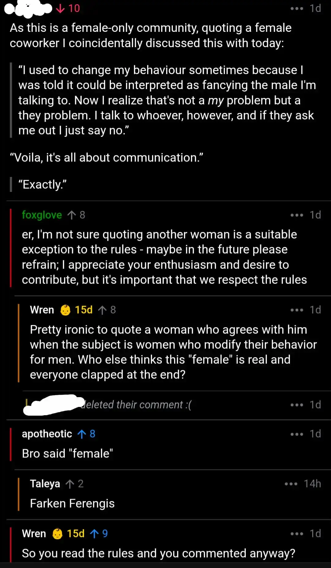 arrow-up1259arrow-down1imageDude read the rules of woman only community and decided to post anywaylemmy.dbzer0.comSchwertImStein@lemmy.dbzer0.com to Mildly Infuriating@lemmy.worldEnglish · edit-215 days agomessage-square327linkfedilink