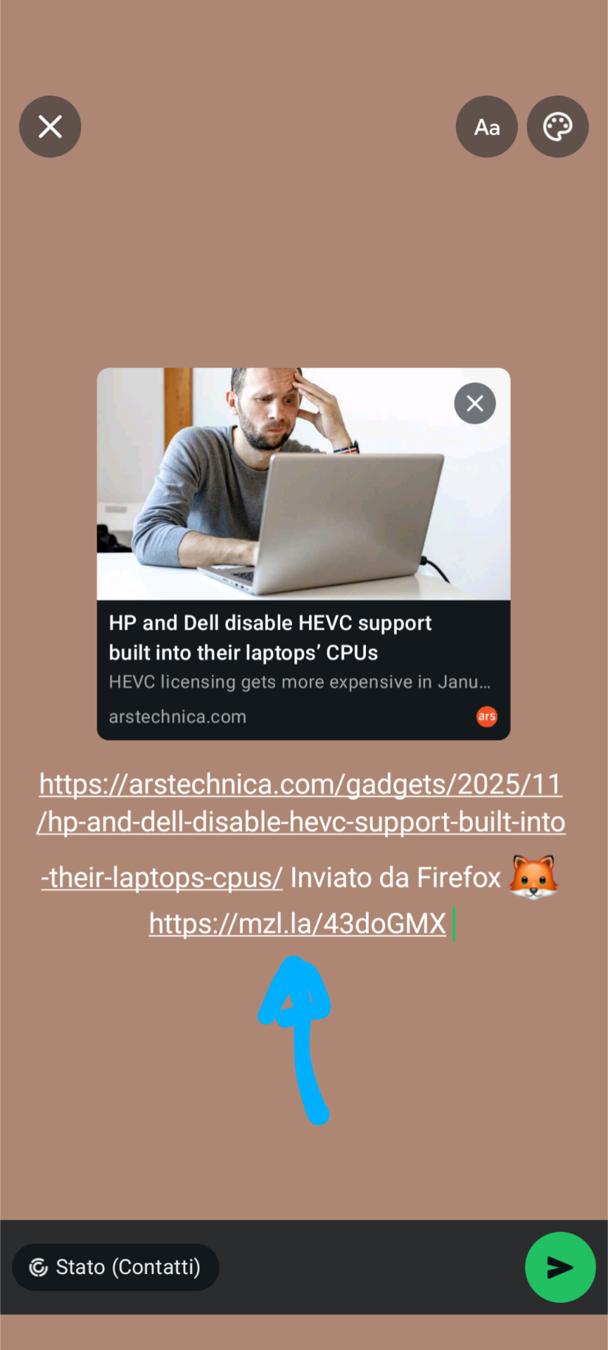 What i didn’t understand is if this link to Firefox was inserted by you at all. It looks like it was appended to a completely unrelated link that you wanted to share. So Firefox hijacked your message to insert a second link. Is that correct? Because that would infuriate me. I found this seeing in my Firefox and it defaulted to be active.