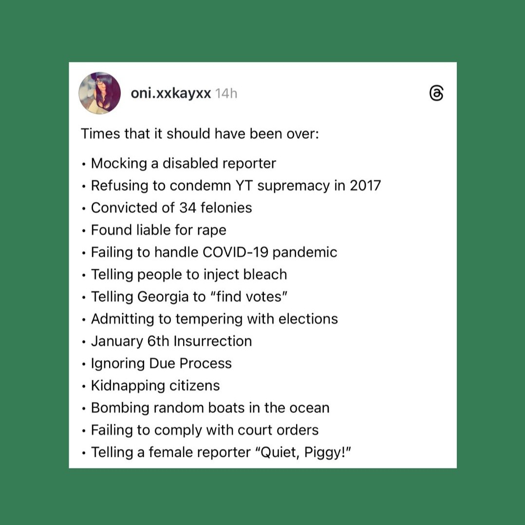 His political career should have been over about 10 minutes after it started. Just proves how many Americans are horrible human beings. And I say that as an American. We’ve lost our way.