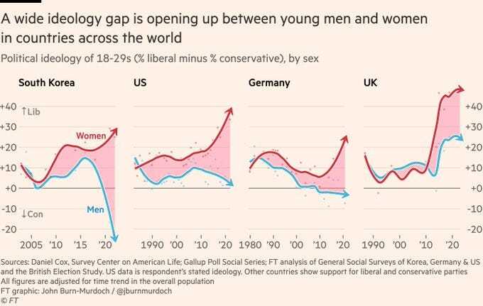 arrow-up1406arrow-down1external-linkTIL: Young Men Ages 18–29 are Turning Right-Wing and Women of the Same Age Turning Left-Wingmedium.comtheHRguy@lemmy.world to Today I Learned@lemmy.worldEnglish · 7 days agomessage-square485linkfedilinkcross-posted to: progressivepolitics@lemmy.world