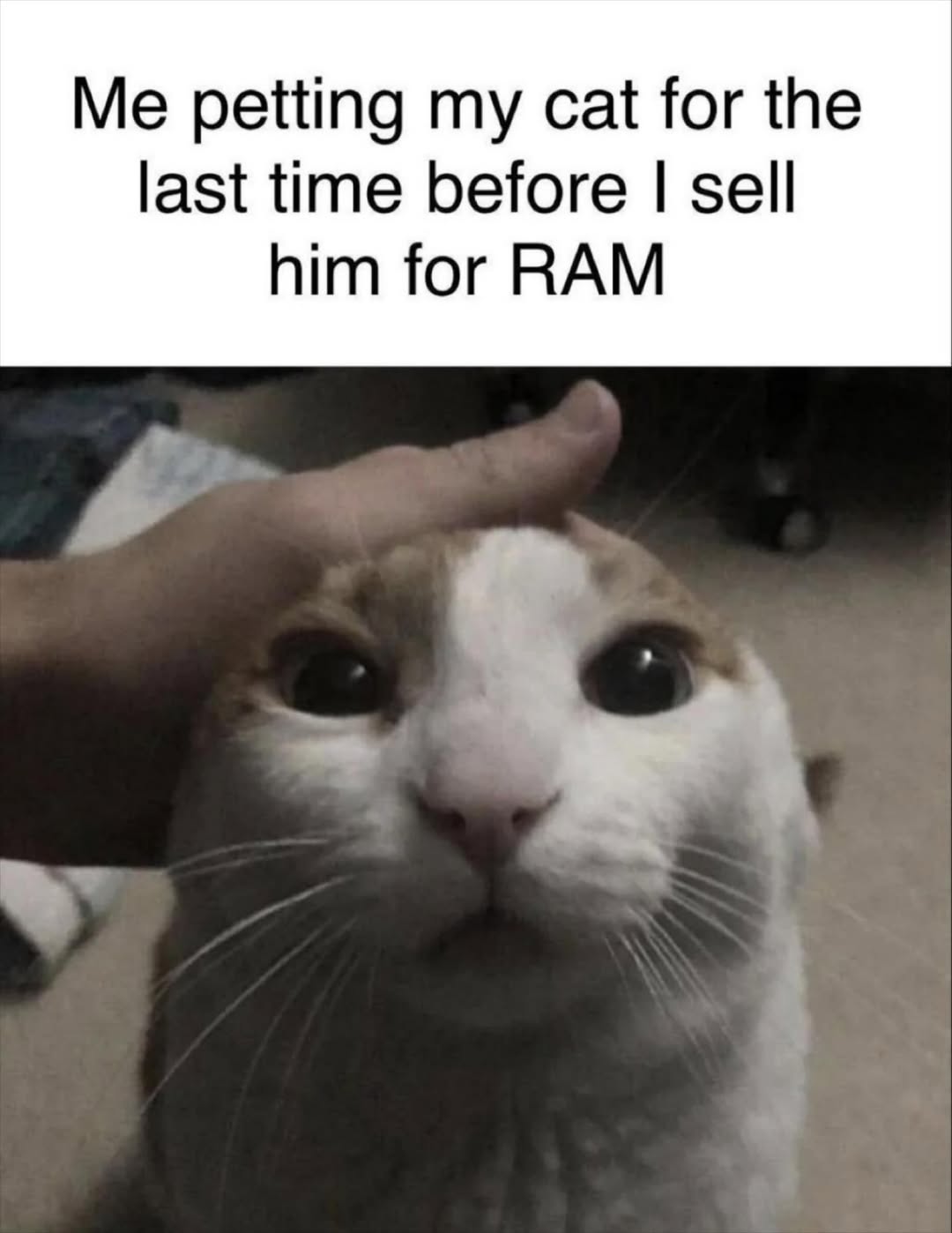 Unfortunately, most cats have soldered LPDDR5 RAM chips, and therefore can only be desoldered to extract the DRAM chips, although some models of cat sometimes do have upgradable ram, such as pre 2015 cats with standard SO-DIMM modules (usually 2 sticks from 2 to 4 GB each,) or rare high spec cats which tend to have LPCAMM modules instead (on average being 1 stick of 32gb or higher).