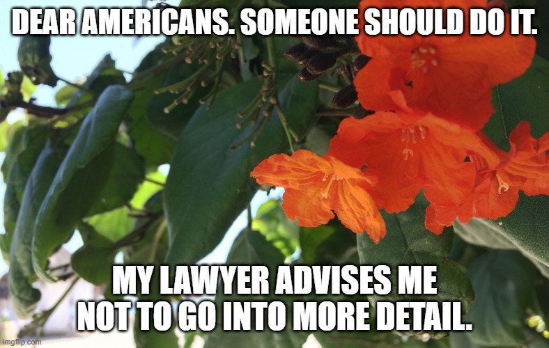 Well the rest of the world wanted the us population to learn from the 2016-2020 idiots first term, but instead they said “Fuck you, cunts. Lol” and then the majority of them either voted for that thing, or enabled it by not voting or protest voting. So that option is off the table.
