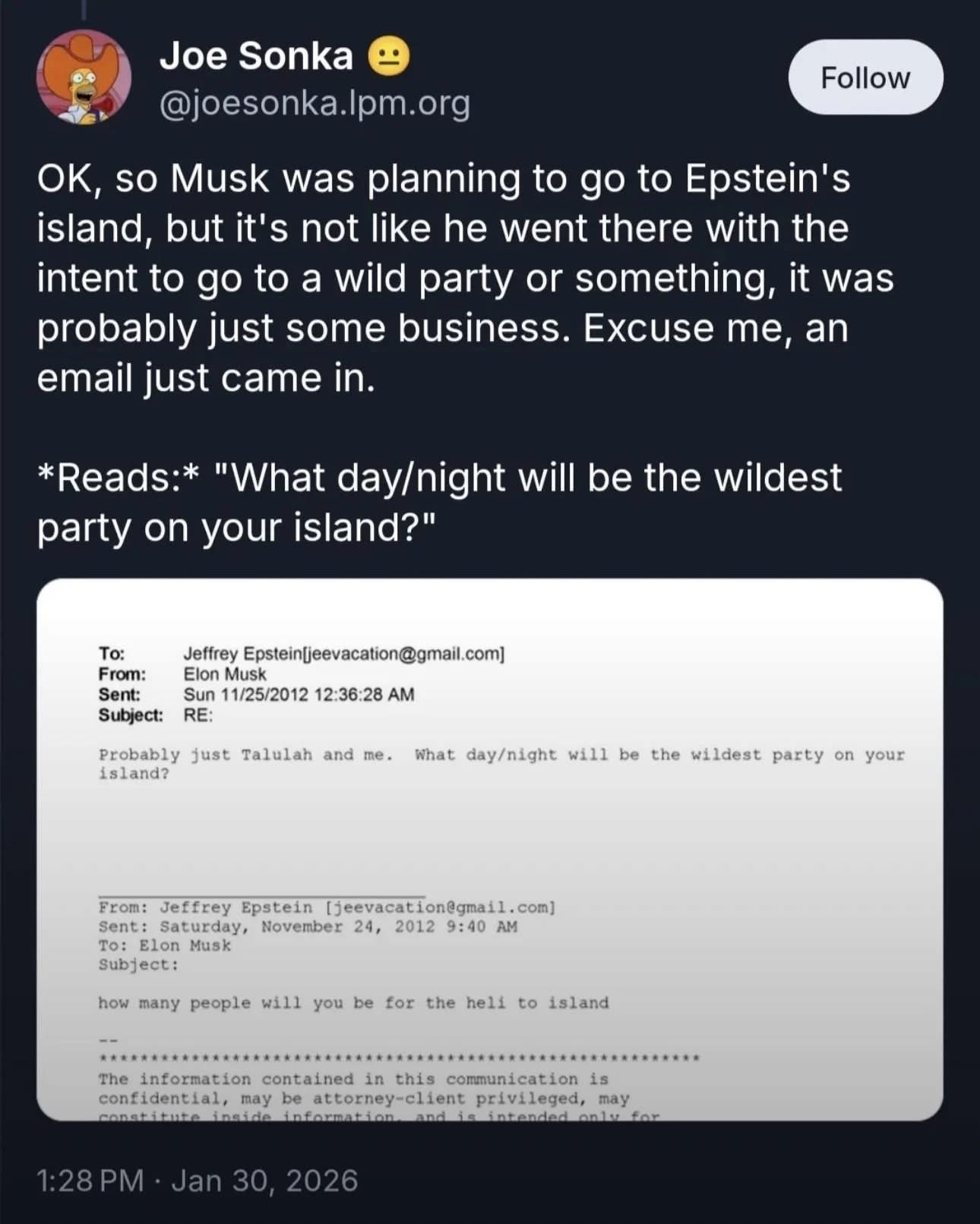 It seems like someone who is trying really hard to convince himself that he’s cool. “Oh yeah, a cool guy would go to the wildest party!” And when validated with attention via Tesla, SpaceX, and internet antics, he just started turning up the volume on the “edgy teen” knob. So he thinks he’s the smartest, coolest guy in every room, who everyone loves. And he’s, well, Elon Musk.