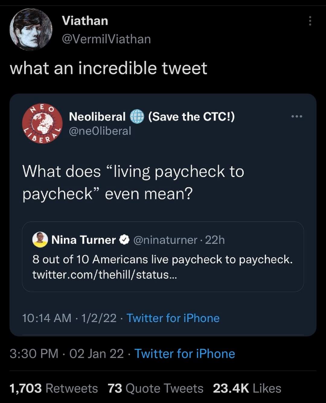 Paycheck to paycheck can be a pretty broad term. I worked at the bottom rung in healthcare scraping by and had to endure listening to people making 3x what I made talking about when their check was gonna hit the bank. It’s easy to be broke when you have a spending problem