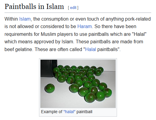 “Hey, just FYI, all your paintballs have pork fat in them” would be a more startling revelation.