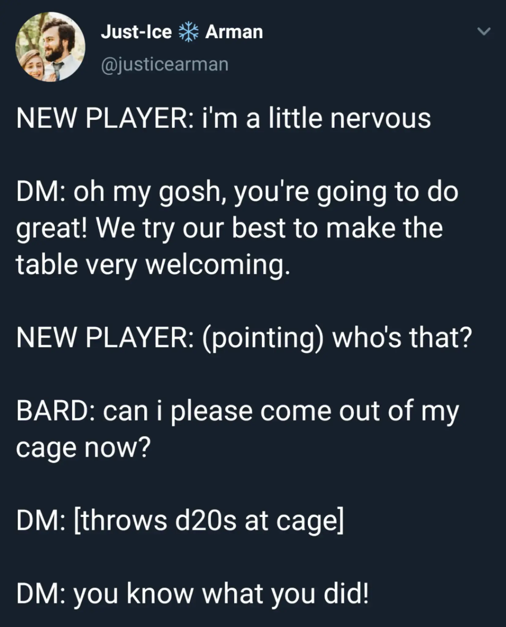 Plot twist: the bard likes being in the cage