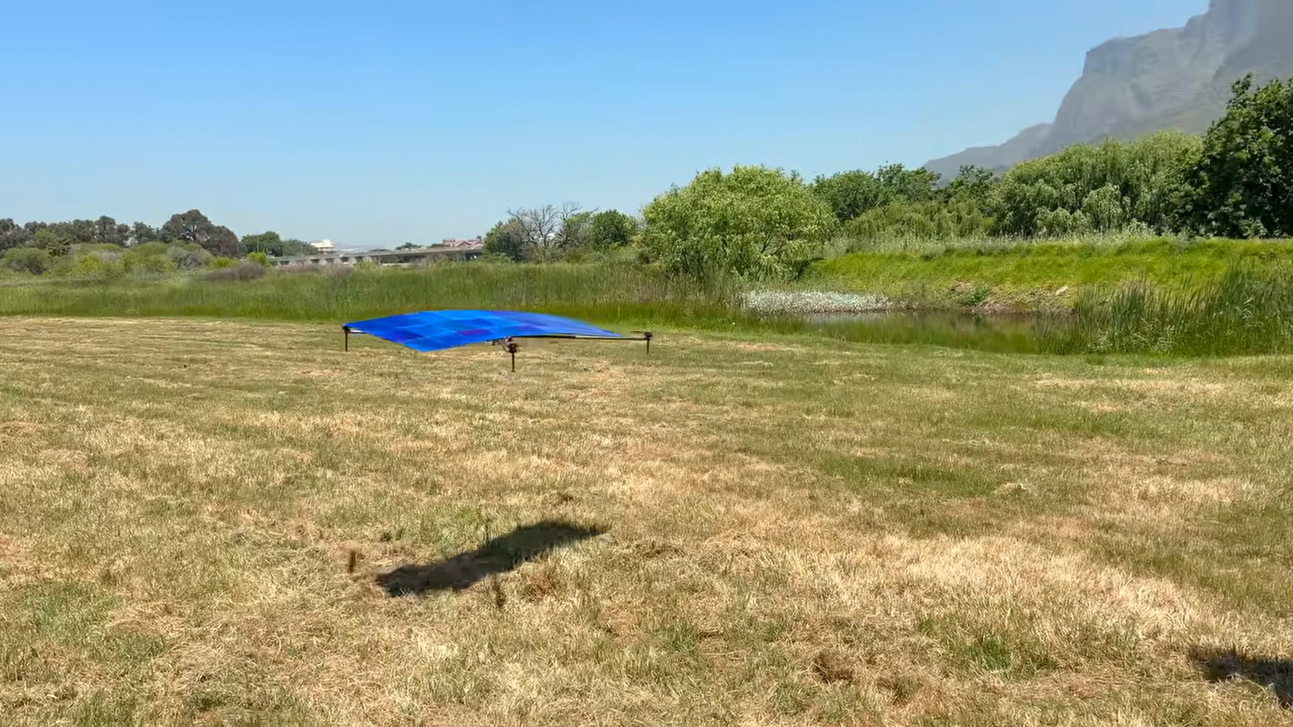 Some amazing engineer built a drone that can lift its own weight using only the electric power that it gets from an on-board solar panel and nothing else (no battery).