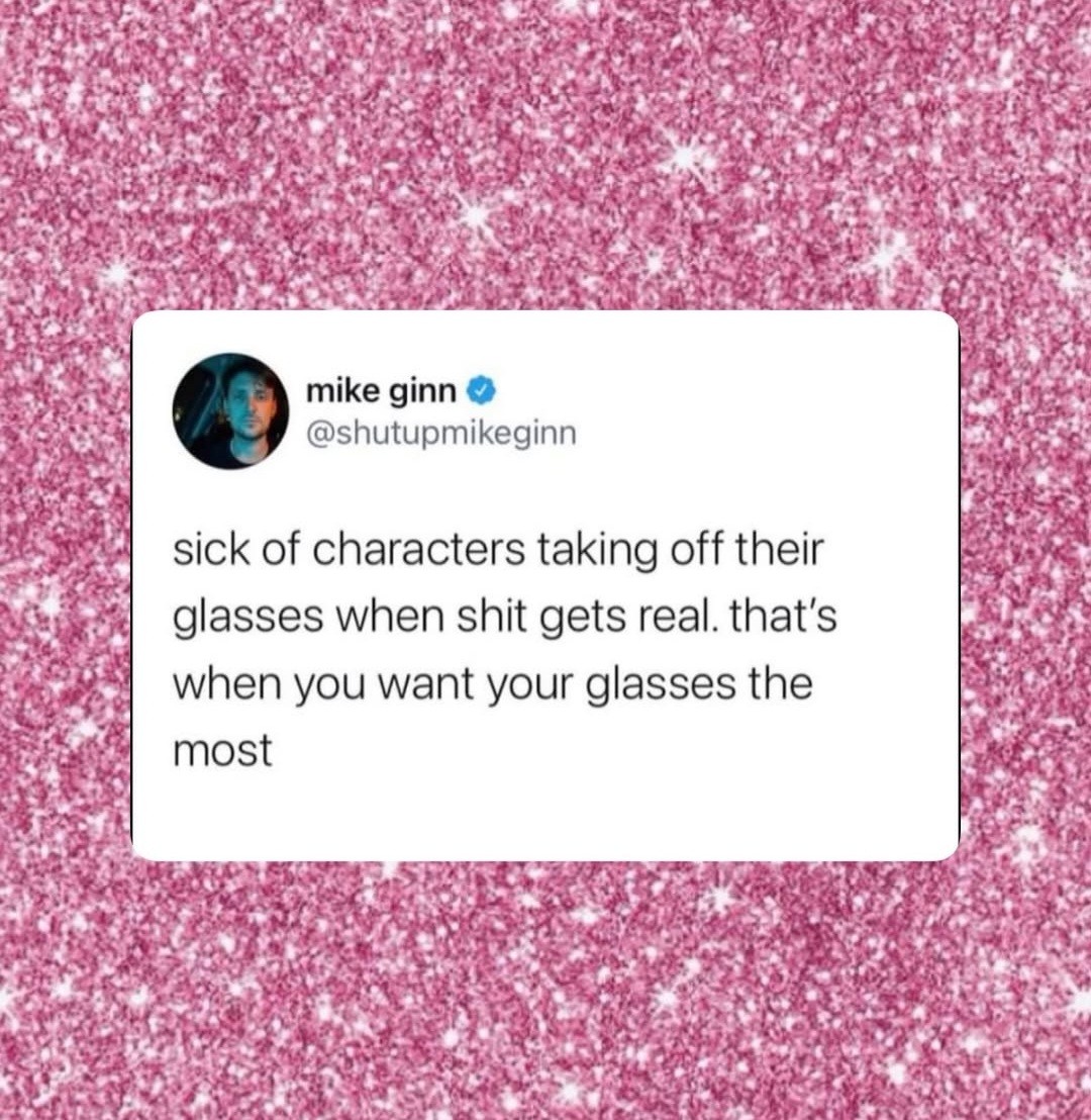 Meanwhile, anime charachters: adjust glasses to sit just right when shit gets real.