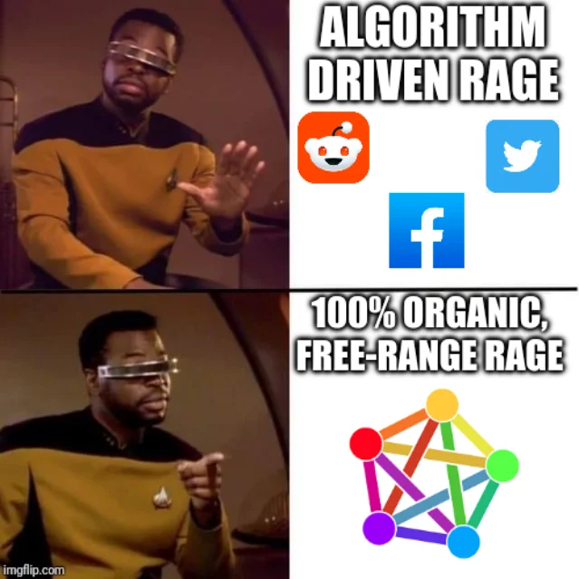 .worldbefore I moved to startrek.website and the “feel” is just so much better here (general negativity of the overall Threadiverse notwithstanding). As you said, that’s primarily due to modding and giving the perma boot to the ones who don’t play well with others (as large as my block list is here, it’s significantly smaller than the blocklist I had on .world before I just gave up it as an instance).Even Linux took decades to arrive at where it is at today