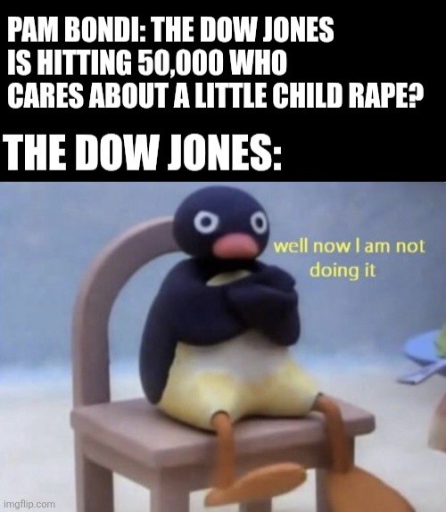It’s like when Bondi asked why we aren’t talking about the DOW in the Epstein hearing.