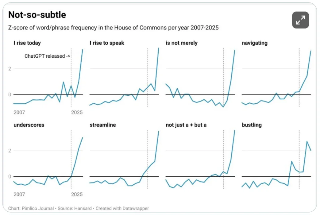 Data Is Beautiful@lemmy.ml•The surge in Al-written speeches in Britain's House of Commons visualizedEnglish